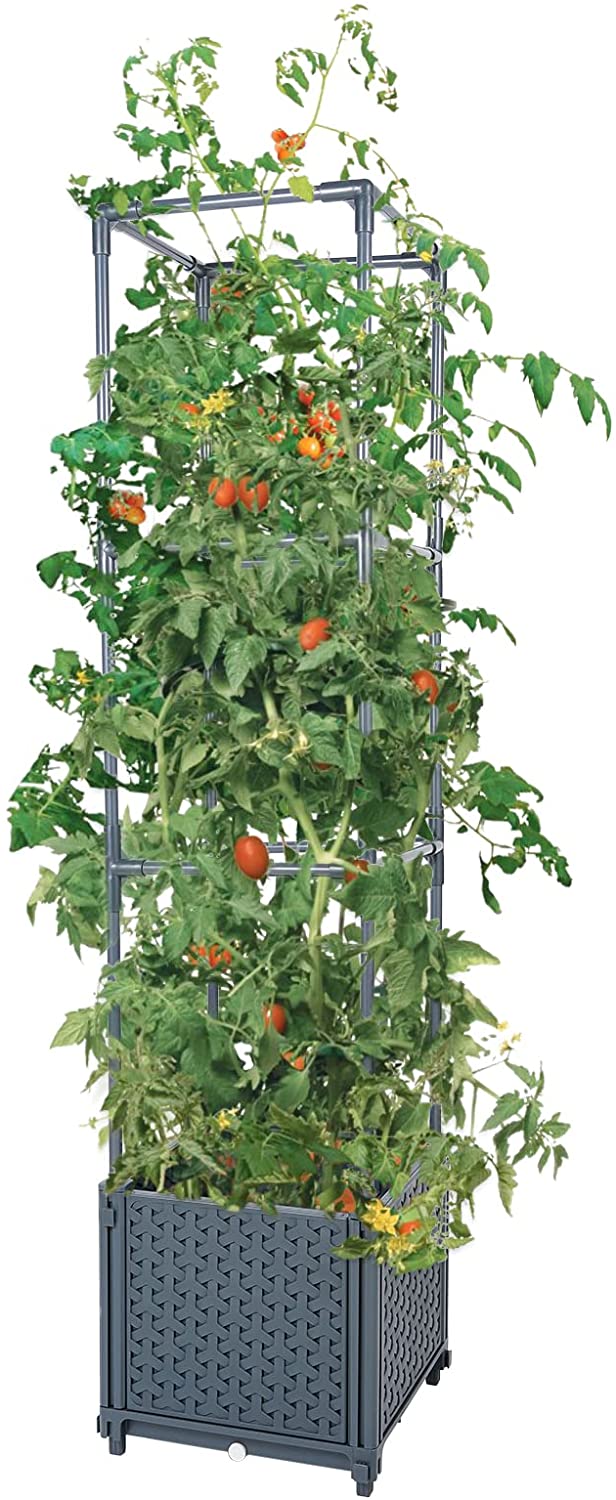 Amazon Com Yaheetech 50 H Raised Garden Bed With Trellis Wheels Standing Vertical Horticulture Planter Box For Vine Climbing Plants Flowers Herbs Brown Patio Lawn Garden